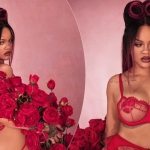 Rihanna duket e mrekullueshme në të brendshme të kuqe me dantella